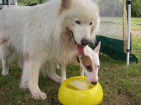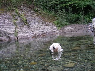 ネット専門にしようと思っていたのに それさえ言うことを聞いてくれなくなったので 新しい方のパソコンを使うことにしました Vistaにまだ慣れていません そんなわけで 1週間前のひゅうがです 毎日めちゃめちゃ暑い日が続いているので とにかく休みの日は 水遊びに限ります 夏休み中だから人が多いかと思ったら 今回も誰もいなくって 貸切川原でした もちろん今回も最初は水風呂 そして深さがあったので 今回は泳いでました 足がだんだん弱ってきても 泳ぐのはリハビリに使うくらいだから 泳ぐのは大賛成なんです 泳ぎだすと調子よく 棒拾いもしてましたよ では、久々動画で すいすい~っとな 棒も拾いにいけるよ(かあちゃんには渡さんけどね) |