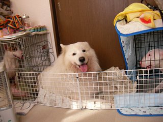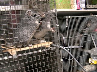 チンチラさん達も必死です うちはとりあえずもう2匹いる女の子にもう負担をかけないためにオスメスのケージを分けています 左がオス(終と玄がうつってます)で右がメス(安と心)がいます チンチラは妊娠期間が110日と長いので いつも5月頃に出産するのを考えると 今頃がちょうど発情期なのかも もう殆ど血がつながってるから一緒にさせてあげられないんです 出産で命を落とすような事になったら恐いですから でもね、オスは姿が見えるからすごく一緒に居たいみたい それに比べて女性人のクールな事(^▽^;)興味を自分に向けておいてさって行きます 罪な女共です それでは幸ちゃんが隣の心ちゃんに一生懸命ラブコールを送ってるのに全く相手にされない様子をどうぞ 「ラブラブ心ちゃん」 (音を少し大きめにして注意して聞いてくださいケージをガタガタする以外にキュウクゥと声出して呼んでいるのが聞こえると思います) |