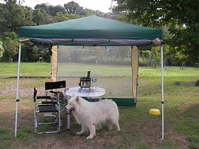 ひゅうがをリード付けたままでテントの外にだけ出したからウツラウツラは出来たんだけど、朝が来ても
