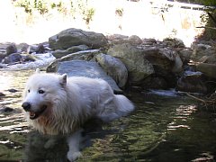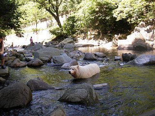 ちょっと向こうは泳げる深さもあるいい場所を見つけて楽しんでいると